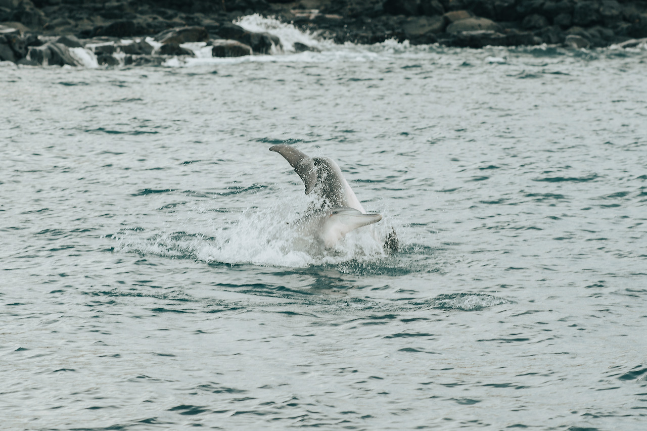 그렇게 한참을 돌고래를 쫓아 셔터를 누르기를 반복했다. 수백 장의 사진을 찍었고, 그 가운데서 기껏 건진 사진은 돌고래 등짝 사진 몇 장이 전부다. 바다에서 춤을 추는 돌고래의 모습은 아름다웠고, 역동적이었으나 카메라에 담지 못해 내심 아쉬웠다. 그런 마음을 읽은 듯이 선장은 '찍기 어렵죠? 어째 큰 카메라를 가지고 오는 사람들일수록 돌고래 모습은 못 담아내더라고요.'라며 웃어 보인다. 돌고래를 마주하기 전에는 카메라를 챙기며 도감에서나 봤을 법한 돌고래 모습을 찍어야지라고 자신감 넘쳐했는데, 앞에서 펄쩍 뛰어오르는 돌고래를 보며 오래간만에 불타오를만한 피사체를 만났다는 느낌이 온다.