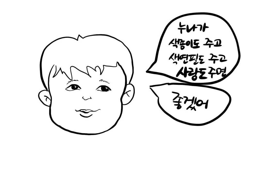 동생;색종이도 주고 색연필도 주고