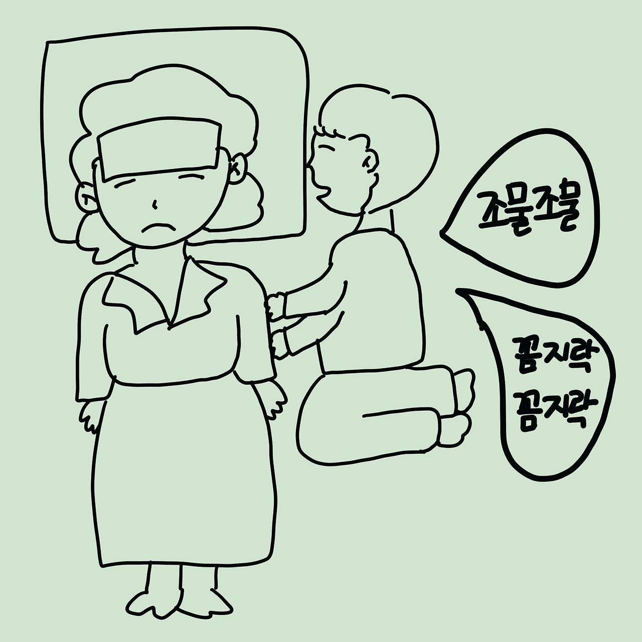 "그게 아니라. 엄마 좀 주물러주고 싶어서 왔어."