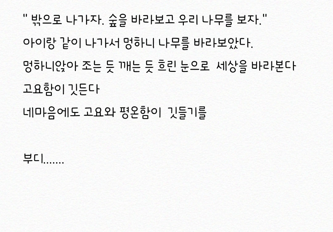 "밖으로 나가서 하늘 좀 보고 오자. 바람도 느끼고 나무도 보자.