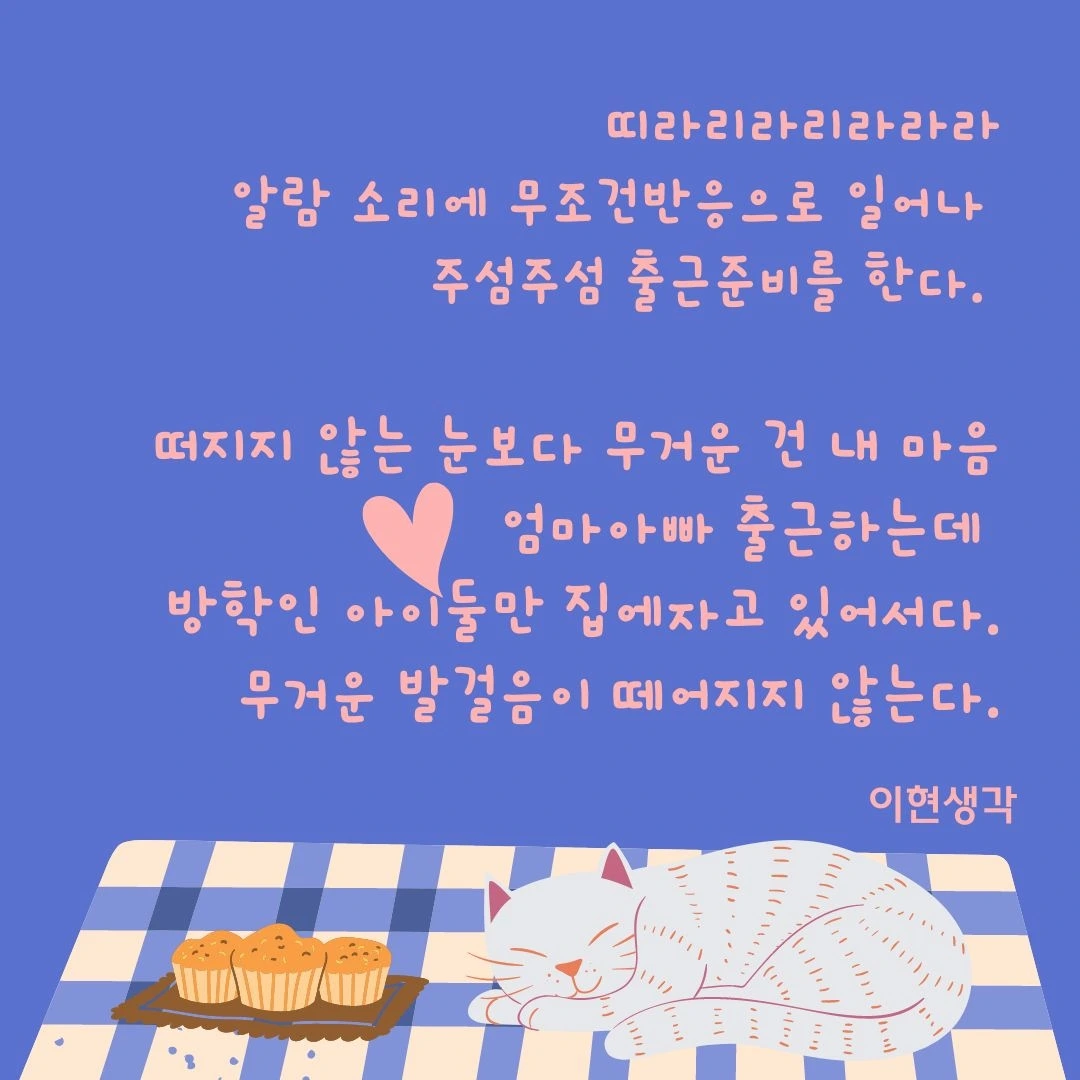 아이 둘은 곤하게 자고 있습니다. 우리 먼저 출근을 하면 아이들은 스스로 일어나서 준비하고 학교에 가야합니다.