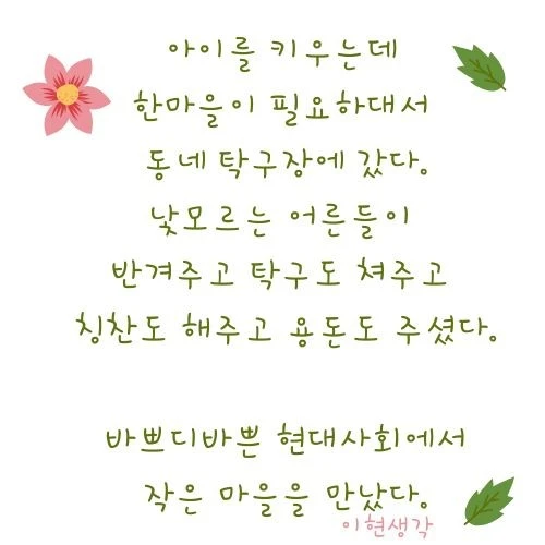 아이를 키우는데 한마을이 필요하다고 한다.