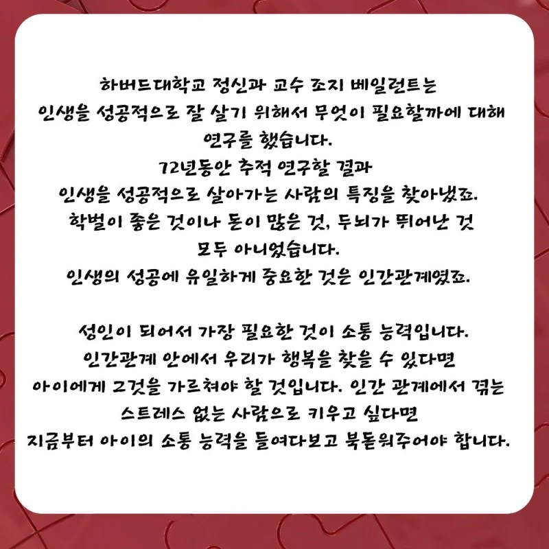 그래야 성인이 되었을때 행복하게 자신의 인생을 맞이할 수 있습니다.