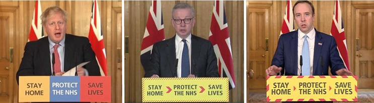 전 세계적으로 위기 상황이었던 2020년 봄, 영국 정부는 매일 코로나 관련 대국민 브리핑을 했다. 브리핑하는 연단에는 3의 법칙으로 만든 슬로건이 붙어 있었다.