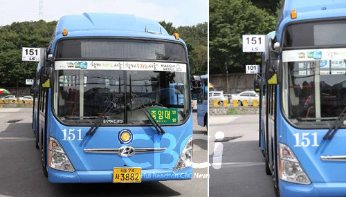 ‘보이는 번호판'이라는 이 번호판은 버스의 문이 열리면 번호판의 위치고 옆에서 정면으로 바뀌게 됩니다.