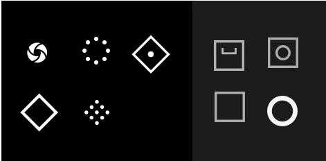 좌측 상단부터 우측으로 설명해드리면 조리개, 탐색, 저널, 스토어, 카메라, 컬렉션, 그리드, 마이페이지 입니다. 제가 보기엔 대상의 고유의 모습을 메타포를 삼는 게 아니라 도형적인 모양에 임의로 의미를 부여한 것 같습니다. 물론 디자인은 감각적입니다. 저도 대학에서 디자인을 배웠기 때문에 절제된 색, 기하학적인 모양의 아이콘들이 상당히 예뻐 보입니다.