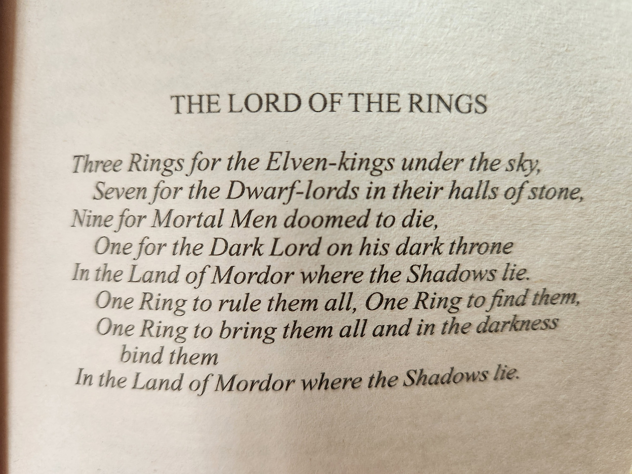 사우론은『반지의 제왕』속 암흑의 군주 Dark Lord이다. J.R.R. 톨킨은 자신이 구상한 중간계와 더불어 '요정어'까지 창조했다. 그리고 작품 속 많은 것들을 요정어로 이름 붙였다. 그중 '사우론'은 '혐오스러운 자'라는 뜻을 지녔다. 그가 한 비열한 짓 중에서 가장 유명한 일이 책의 첫 장에 시처럼 적혀있다.