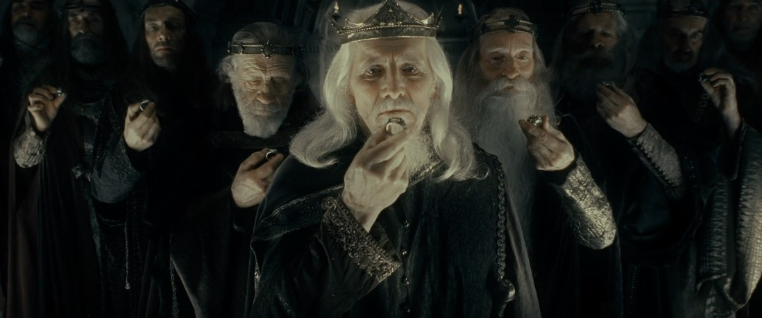 피터 잭슨, 2001, 『반지의 제왕 - 반지 원정대』중 아홉 반지를 선사받은 영주와 마술사