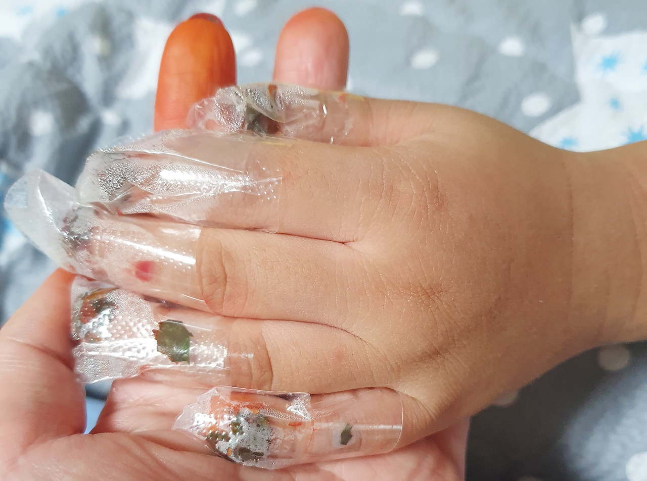 정리하며 보니 내 손가락에도 어느새 예쁘게 물이 들어 있었다.