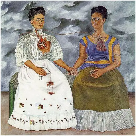 그녀가 말하길, 그녀의 인생에서 두 가지 사고가 있었는데 하나는 차 사고이고 다른 하나는 디에고를 만난 것이라고 한다. 결혼 생활 내내 공공연히 외도를 한 그이지만, 그 중 프리다의 여동생과 관계를 가진 것은 그녀에게 씻을 수 없는 큰 상처였을 것이다. 그 외도를 목격하는 장면에서 초반부의 교통사고 쇼트처럼 빛과 어둠의 대비가 또다시 두드러진다. 그를 목격하기 바로 직전에 그녀는 여동생의 아이들과 불꽃놀이를 하며 즐거운 한 때를 보내고 있었다. 불꽃이 빛나는 모습은 마치 황금의 반짝임처럼 눈 부셔서, 미국에서 다시 멕시코로 돌아온 프리다가 오랜만에 행복을 느끼고 있는 것처럼 보였다. 그 다음 장면에서 그녀는 여동생과 디에고의 불륜 현장을 목격한다, 불이 다 꺼진 어두컴컴한 공간에서 말이다. 그녀는 신을 ‘자기에게 해명할게 아주 많은 분’이라고 일컬었다. 정말로 신이 장난이라도 치듯, 총명하고 아름다운 그녀에게는 틈 사이로 행복이 자리 잡을 적마다 고통이 헤집고 들어왔다. 금가루와 피 칠갑, 환한 불꽃놀이와 어두컴컴한 방. 이와 같은 색의 대비를 통해 그녀의 인생이 찰나의 반짝임과 긴 어둠으로 점철된 것을 느꼈다.