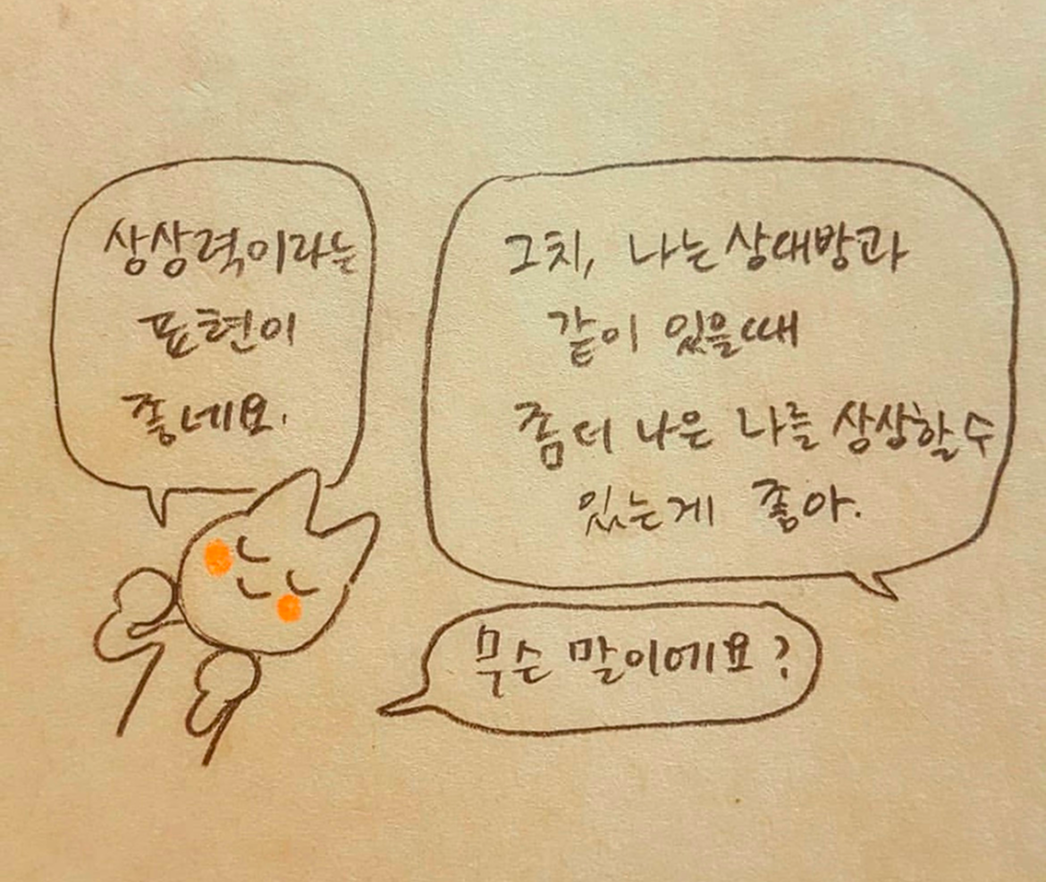 “우리가 사랑을 나누는 순간에”도 미래 어딘가에 있을 이별이 “운석”처럼 조금씩 가까워진다. 태어난 순간부터 우리의 초침이 오로지 죽음을 향해 째깍째깍 흘러가는 것처럼. 그 종말의 순간에서야 우리는 비로소 모든 말을 멈춘다. 이별 후 우리는 더 이상 서로에게 시시콜콜 이야기하지 않게 되고, 죽은 후엔 입과 귀가 영영 멎어버린다. “완벽하게 침묵”한다. 그러므로 어젯밤 우리가 나눈 대화, 어떤 방식으로 침묵할 것인지에 대한 이야기는 우리가 어떻게 이별할지를 더듬는 말들이었다. 그렇다면 우리는 이미 ‘이별’의 과정을 걷고 있는 것인가, 아니면 아직 침묵하지 않고 서로에게 말을 건네고 있으므로 그 자체로 여전히 ‘사랑’인가?