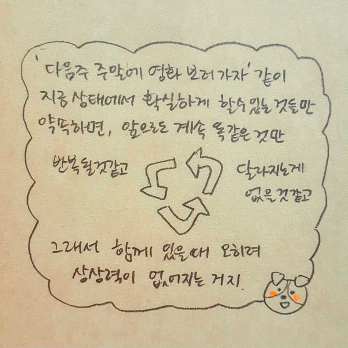 더 나아가, 이제부터는 사랑과 멸종이 완벽하게 겹쳐진다. 두 단어를 아무리 바꿔 넣어도 차이를 알 수 없다. 언제부터 사랑과 멸종이 같은 의미였지?