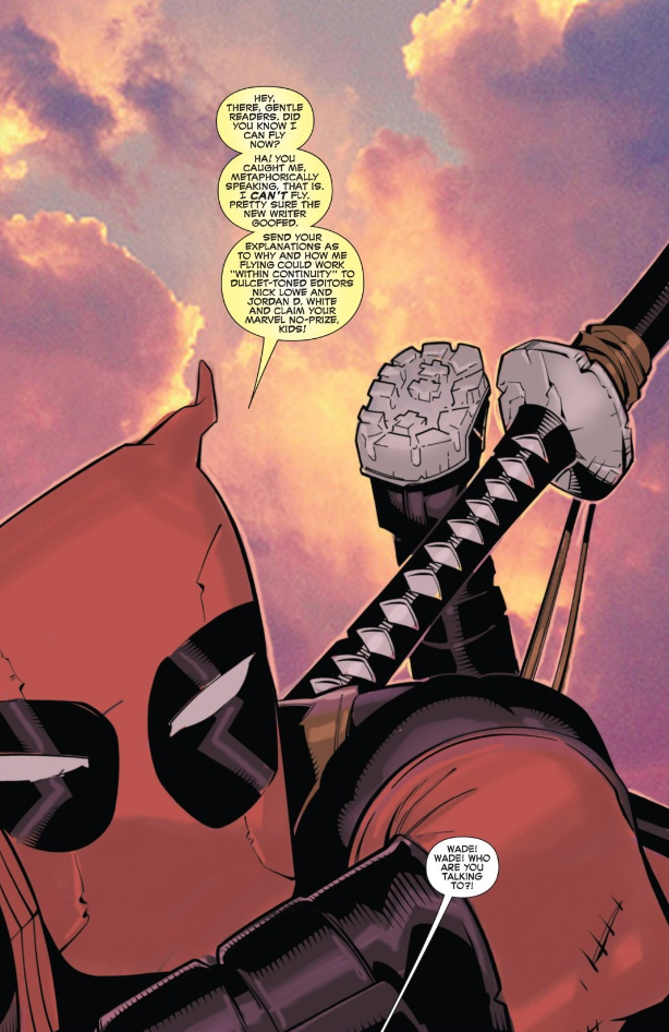 정말이지 이래도 되나 싶을 정도로! 데드풀이 너무 심하게 독자에게 말을 걸어옵니다. 데드풀이 제4의벽을 뚫는다는 거야 누구나 다 알법한 사랑스러운 매력일텐데, 이게 너무 과하다는 뜻이에요. 얼굴에 무작정 들이밀어가지고 부담스러울 정도. 처음 이 책을 읽었을 때 썼던 트윗을 인용해보면 ▶///로비톰슨 데드풀 첨 써봄?ㅋㅋㅋ 아주 그냥 독자 코앞에 막 들이미네 야야야야 여기 너도 나도 좋아하는 제4의벽깨부수기다 여깄다 옛다 먹어라 먹어 (얼굴에꾹꾹비벼버림)///◀ 진짜라니까요. 제가 지금 정말 딱 이 마음이라니까요.
