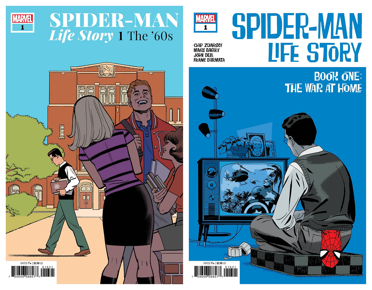 그런 복고의 물결에 <스파이더맨: 라이프 스토리>만한 시리즈가 없어요. <피터 파커: 스펙타큘러 스파이더맨>의 칩 즈다스키가 쓰고, <얼티밋 스파이더맨>을 포함해서 80년대부터 꾸준하게 스파이디를 그려온 마크 배글리가 펜슬링을 맡은 이번 작품은 시대별로 피터 파커의 인생에 있어 가장 중요한 코너스톤들을 하나씩 조명해보는 시간을 가져봐요.