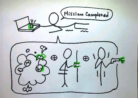 주인공 톰 크루즈가 적에게서 핵미사일을 제어할 수 있는 가방을 빼앗아 멈춤 버튼을 누르지만, 버튼은 작동하지 않는다. 통제실의 전원이 들어오지 않았기 때문이다. 이 전원의 회복을 위해 나머지 팀원들은 필사적인 노력을 한다. 이 장면이 인상적이었던 것은 부상을 입은 팀원을 대신해 총과 가장 거리가 먼 IT 전문가가 총을 쏘는 등, 팀원 각자가 원래의 역할이 아닌 일을 했을 때 미사일이 제어되고 미션이 완성되었기 때문이다.