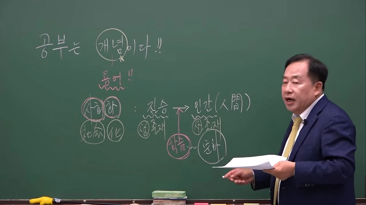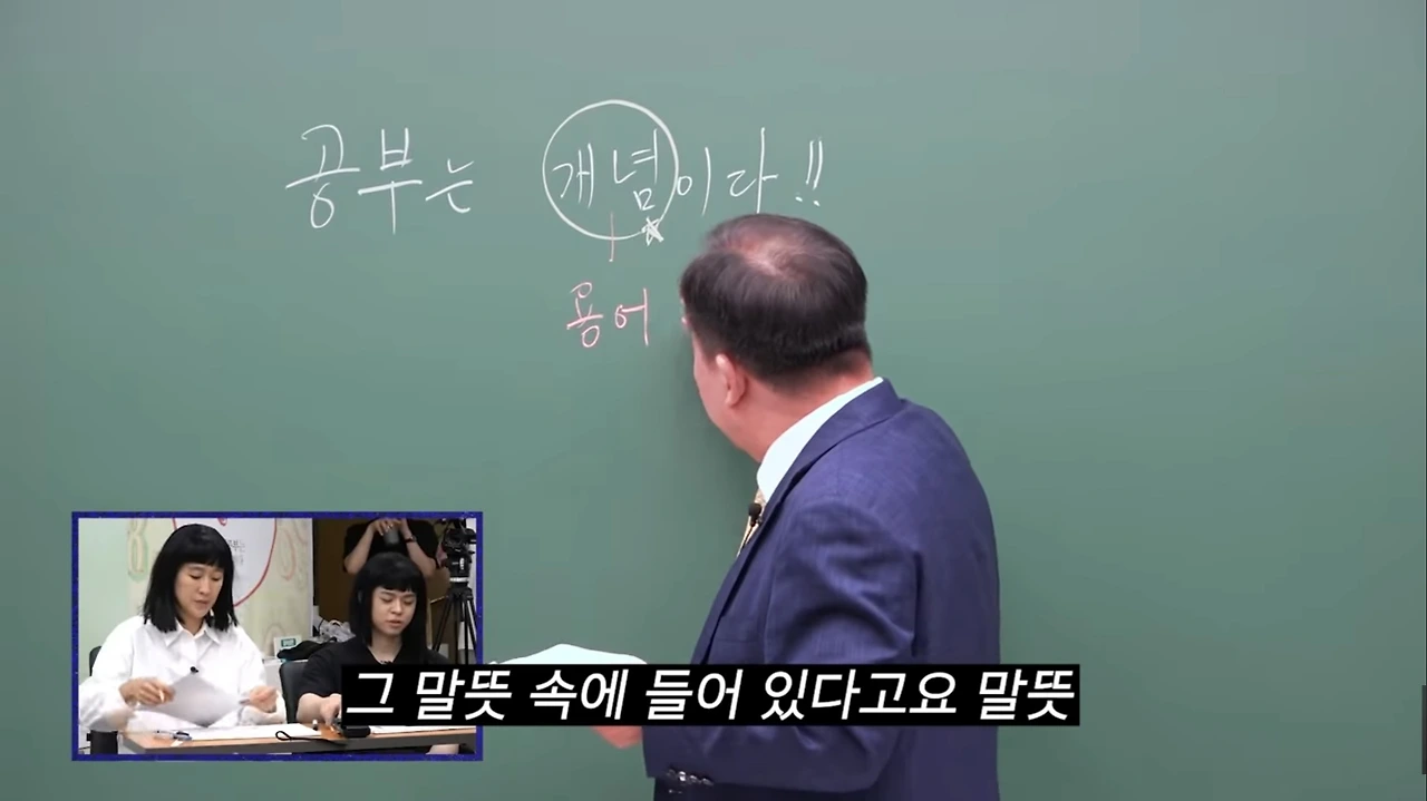 "(공부를) 가장 쉽게 잘하려고 하면 개념을 잘 알아야 되거든요. 그래서 개념이 뭐냐. 개념은 핵심이 딴 게 아니고 용어 속에 다 들어 있어요, 용어 속에. 그 말뜻 속에 들어 있다고요, 말뜻."