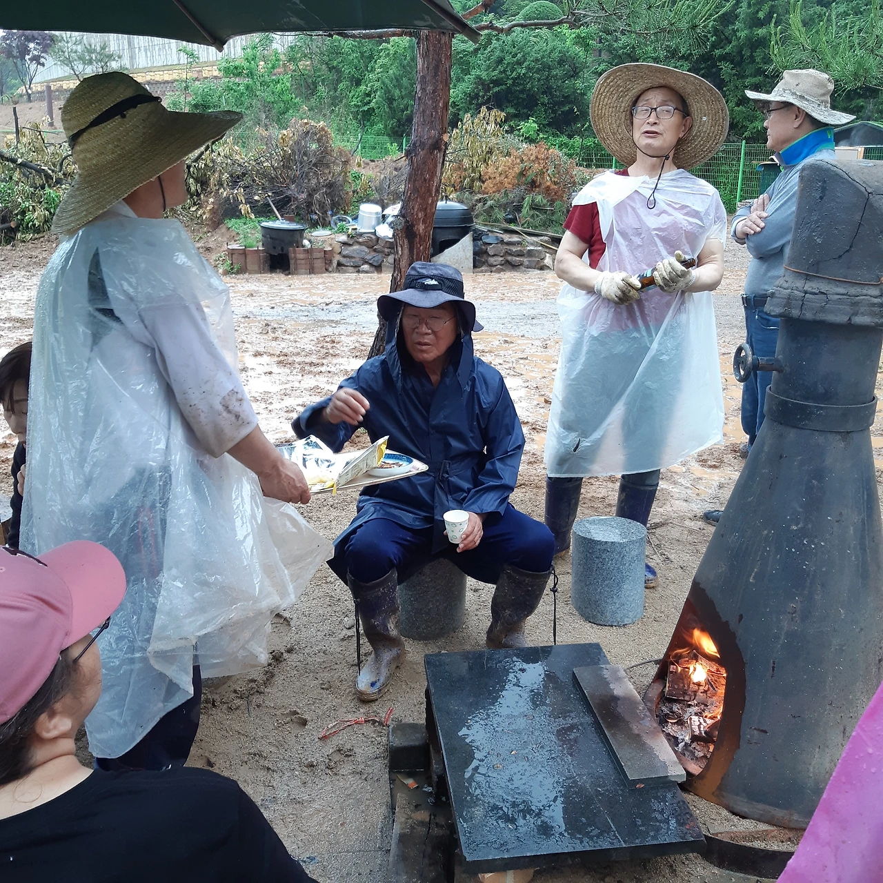 [하나님과 만남의 집]에서 일하는 중간 휴식을 취하고 있는 대역자와 제자들