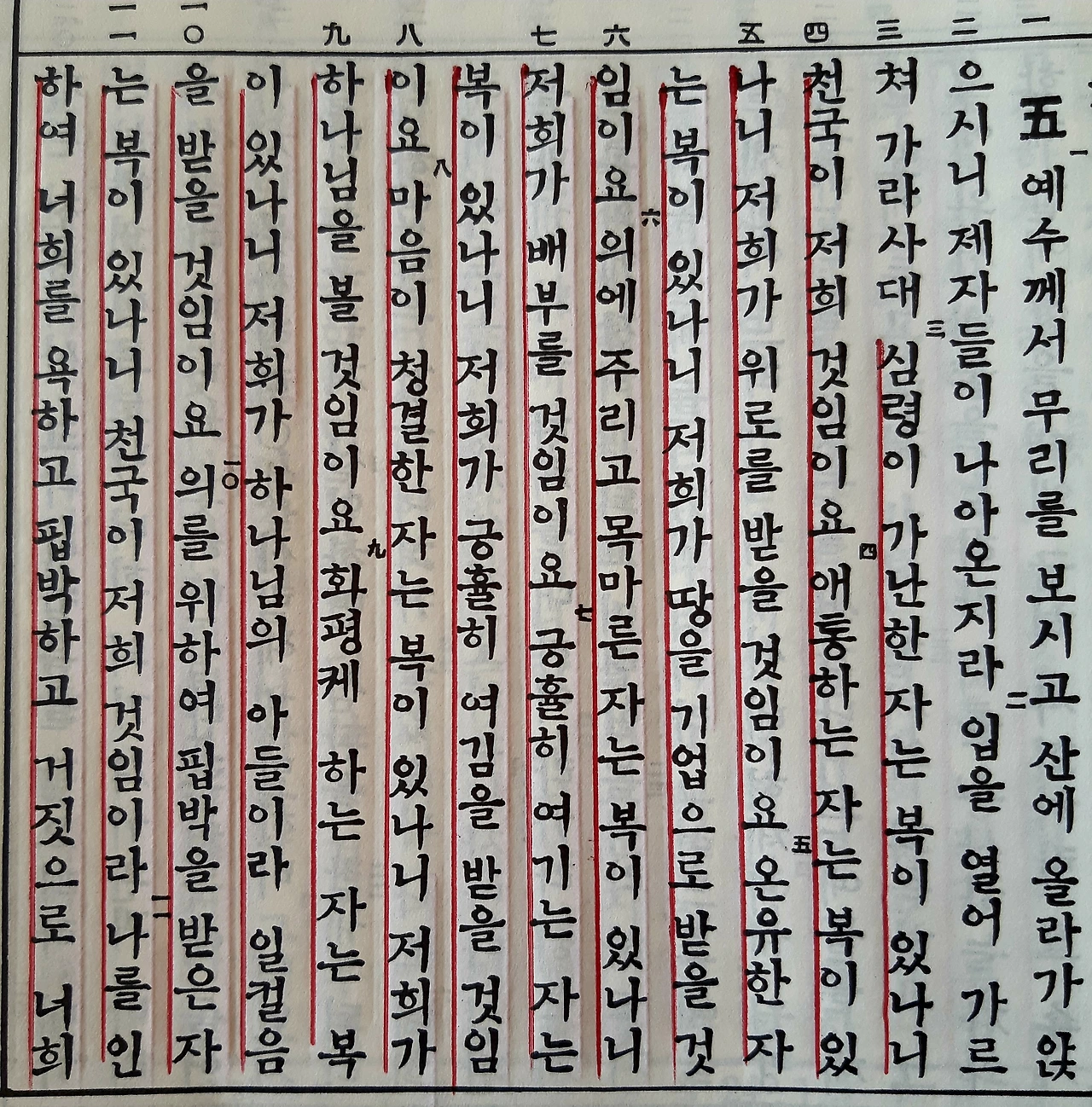 의를 위하여 핍박을 받은 자는 복이 있나니 천국이 저희 것임이라. 나를 인하여 너희를 욕하고 핍박하고 거짓으로 너희를 거스려 모든 악한 말을 할 때에는 너희에게 복이 있나니 기뻐하고 즐거워하라, 하늘에서 너희의 상이 큼이라. 너희 전에 있던 선지자들을 이같이 핍박하였느니라.