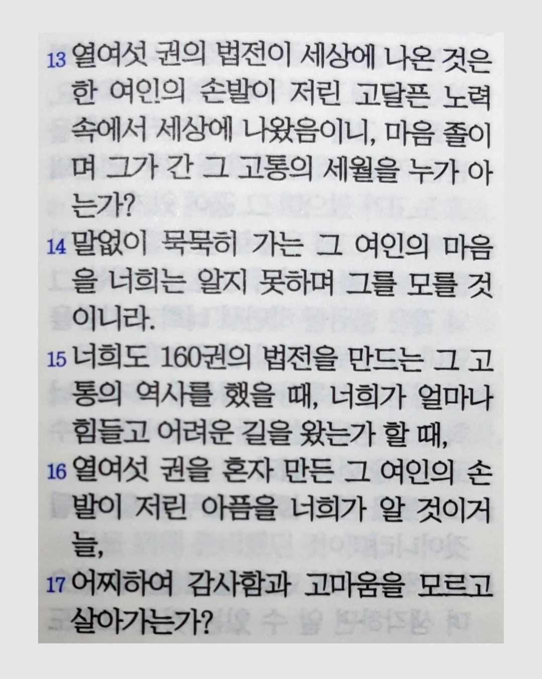 필자가 책을 읽은 초기에 몇 번째 말씀인지 메모하지 않은 채 찍은 사진이며, 몇 번째 말씀인지 알게 되면 갱신할 예정임
