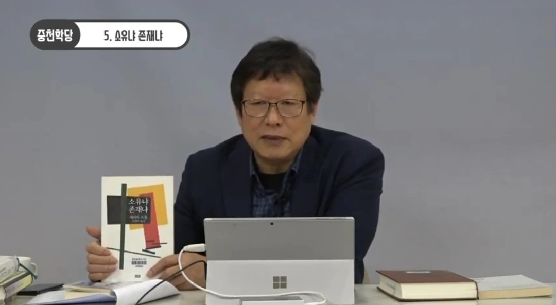 그래서 우리는 철학적으로 반드시 물어야 돼요. 내가 가진 것이 아닌 그것을 가지고 있는 나는 누군가, 이런 질문을 할 수 있어야 돼요. 그런 질문을 근본적으로 던지고 있는 책이 바로 《소유냐 존재냐》 하는 책이에요."