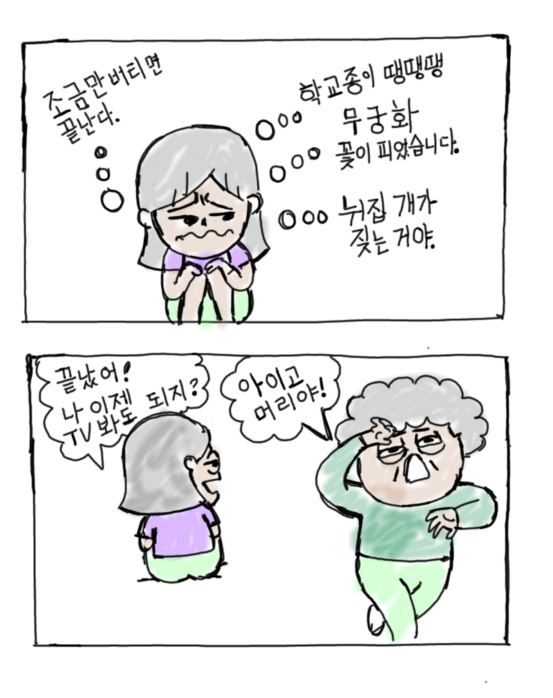 피해다니고 도망다니며 잔소리와 비례하여 점점 게을러지고 반항적으로 변했었다.