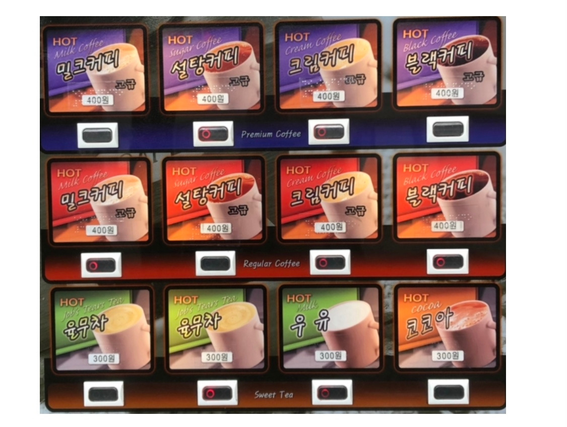 2년 전쯤 어느 지하철역에서 본 커피 자판기는 꽤나 '신박'했다. 개화기 때 커피를 비롯해 신문물이 들어왔을 때 조선 사람들의 충격이 이러했을 거다! 인스턴트커피에 쓰이는 원두는 최하 등급을 사용하는데, 이 자판기는 생두를 로스팅한 원두커피를 제공하는 카페의 축소판이었다. 이제는 인스턴트 커피시장에 고급화 바람이 불어 충분히 그럴 만도 했지만, 믹스커피 자판기에 익숙해서인지 놀라웠다. 러시아워 때, 플랫폼에서 사람들은 빠르게 제 길을 가는데 혼자 자판기 앞에서 커피를 기다렸다. 손으로 눌러 선택하는 메뉴사진과 버튼도 기존 자판기보다 더 큼직하게 만들어 놓아 꼭 눌러보고 싶었다. (원두커피 비슷한 맛이 나긴 했다.)
