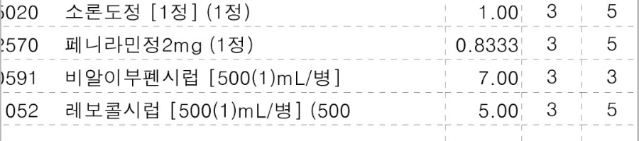 만 9세 아이가 받은 처방은 다음과 같다.