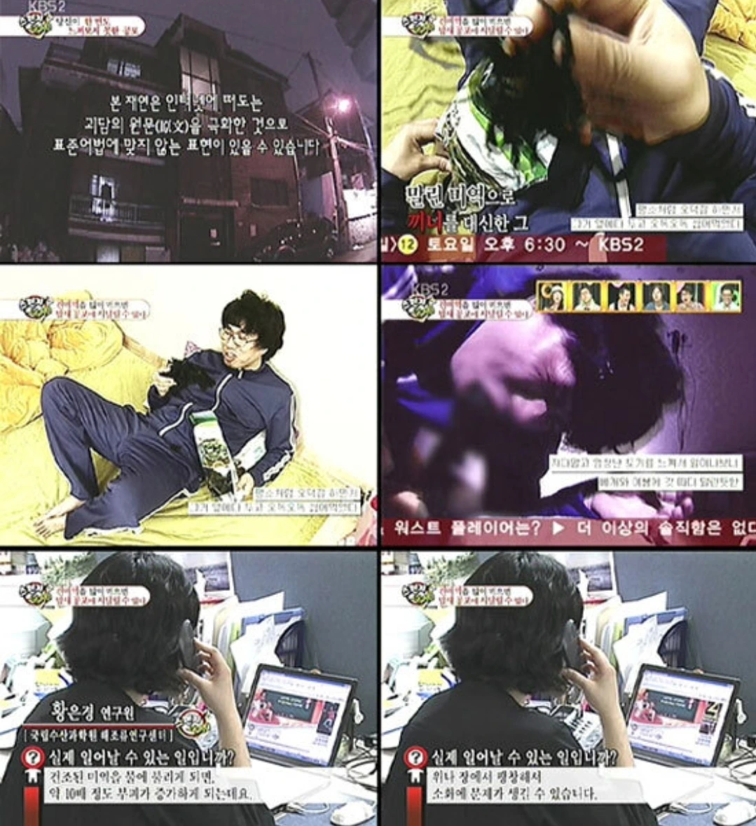 심지어 2010년 6월 4일에 인터넷에 떠도는 미역 괴담을 소재로 실험한 스펀지 프로그램도 있었단다.
