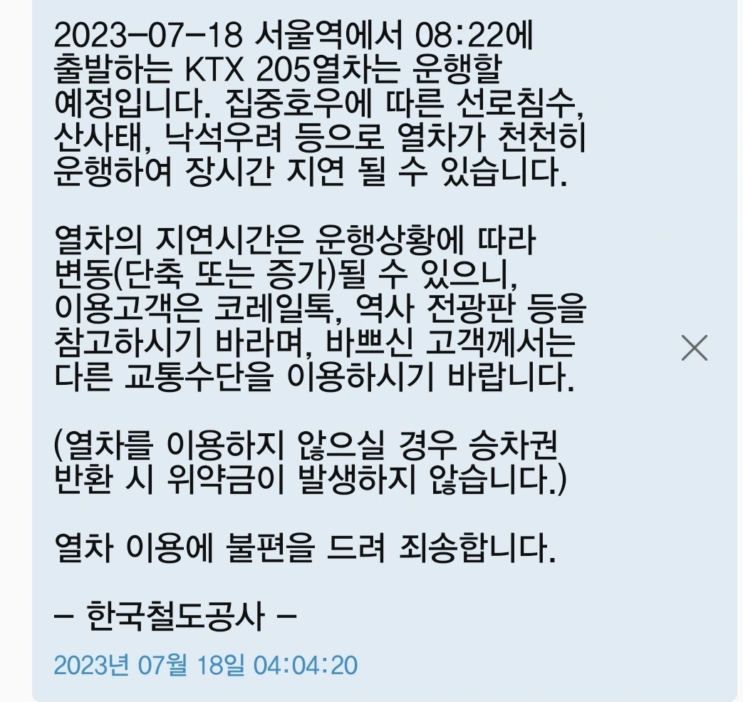 비 때문에 선로가 잠긴다 어쩐다 말은 있었지만 설마 했고~보통 한 시간 전 도착으로 하지만 혹시 몰라 그날표를 두 시간 반 전으로 예매