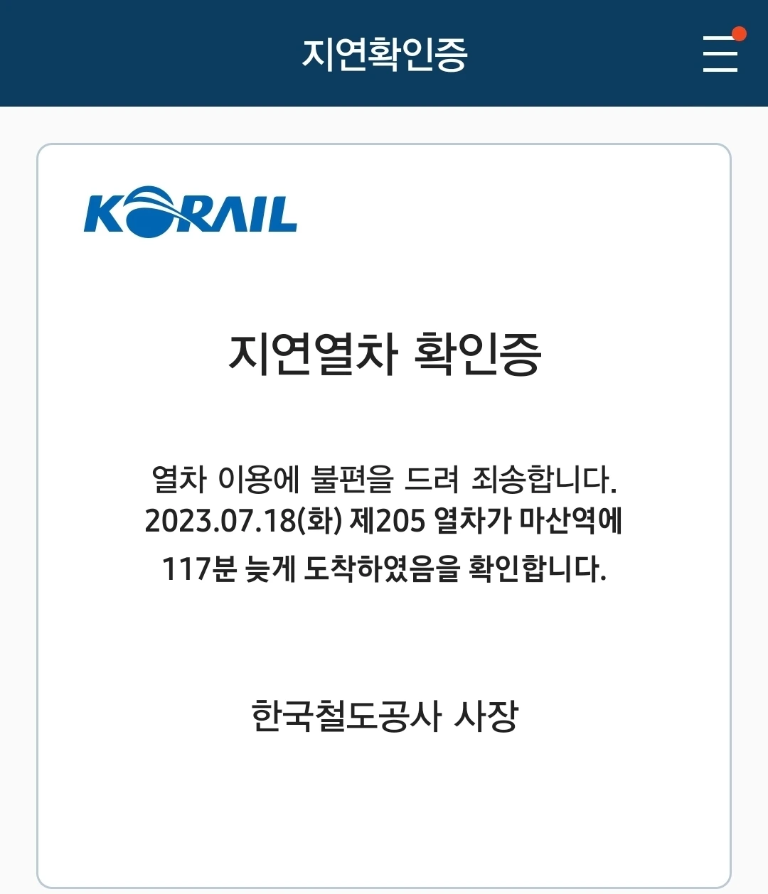 그런데 출발부터 지연되더니 결국 마산역에 하차하니 오후 한 시 반
