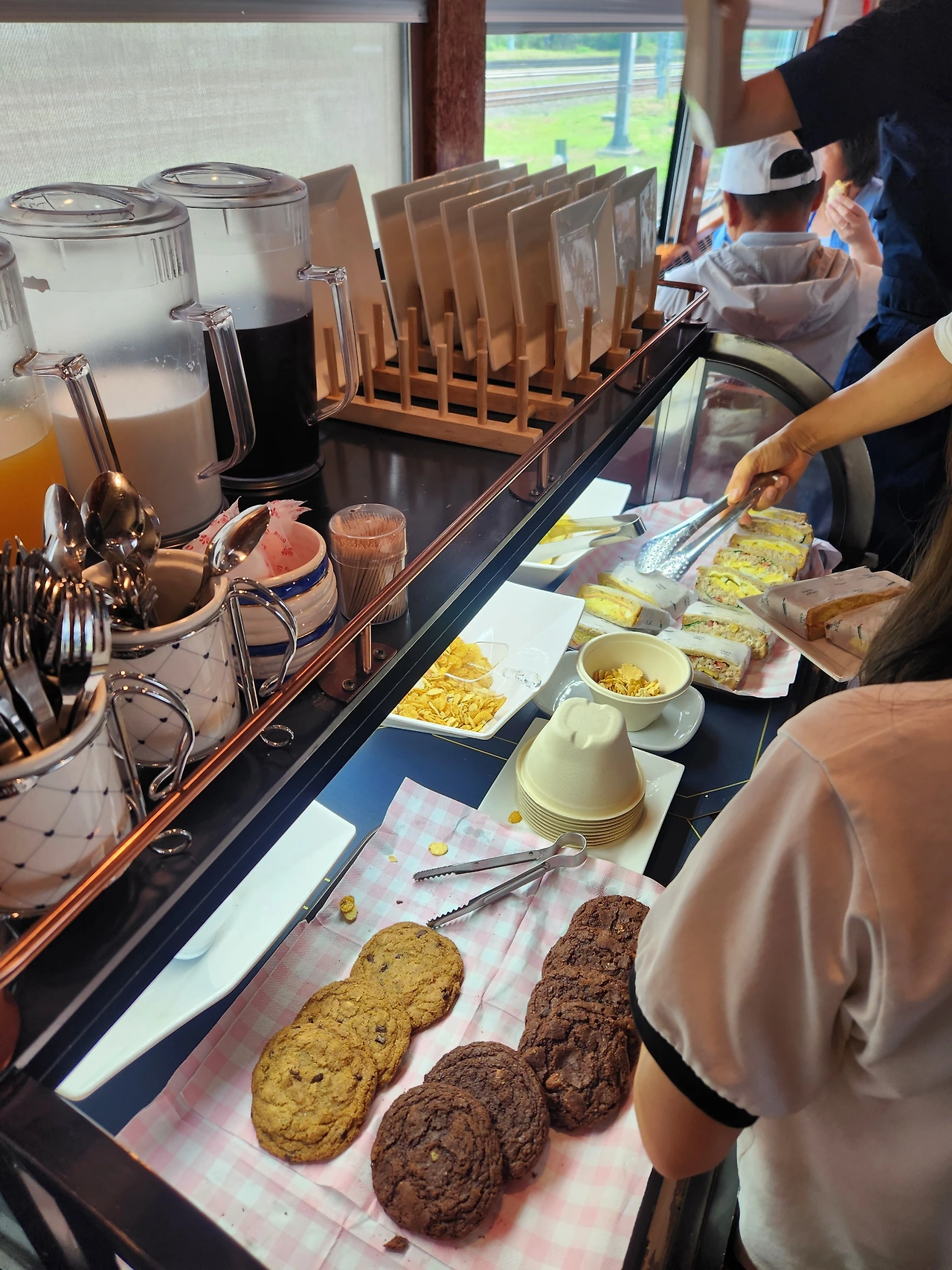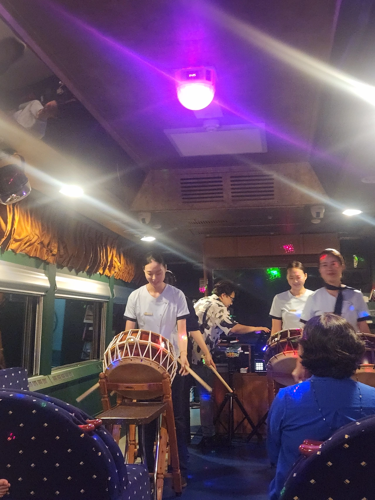 식당칸은 4호차인데 음료, 과일, 빵 등 간식이 무한 제공이라 과일쟁이 아이들과 신랑은 실컷 먹었다. 그리고 이벤트실은 5호차인데 여기서 첫날밤 공연도 하더라는~우리 객실은 7호차였다.