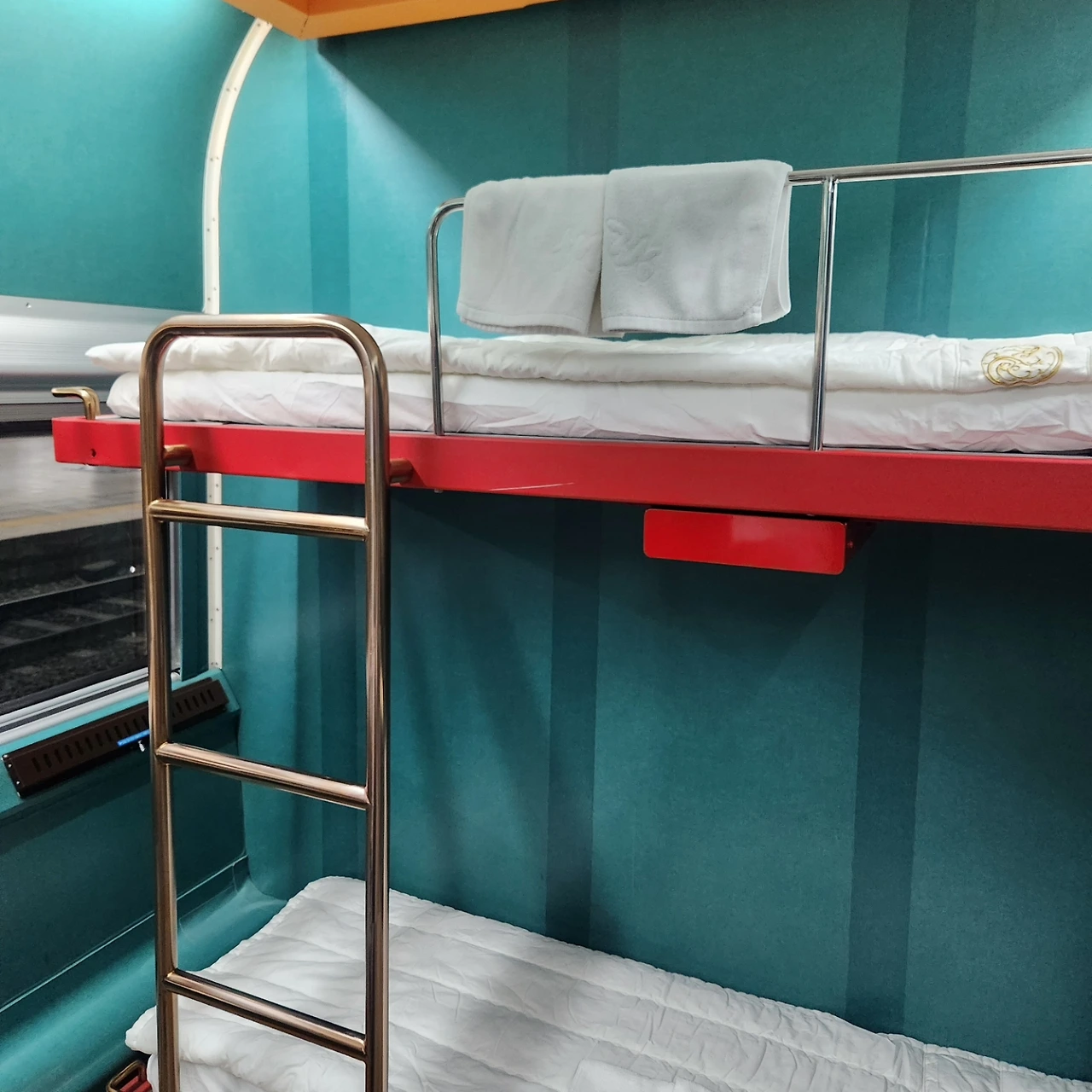 원래 각방에 침대, 화장실, 샤워실이 있는데 여긴 이층 침대와 소파가 있고, 화장실과 샤워실이 따로 없어 공용칸을 이용하는 게 스탠더드 객실의 단점.