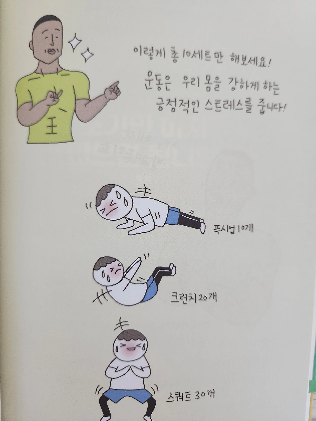 난 매일 푸시업 30개 크런치 100개 스쿼트 100개 실천 중^^