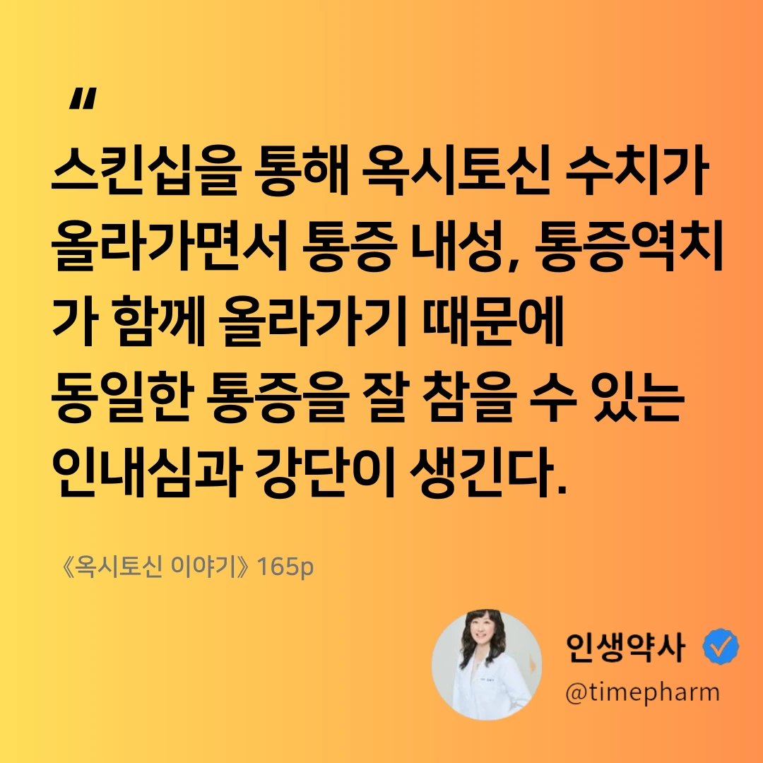 <옥시토신 이야기> 속 저자에 따르면 이런 옥시토신을 높이는 방법 중 하나가 스킨십이다.