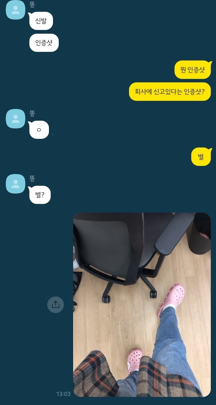 "오빠 인싸 만들어주겠다며 동생이 회사에서 신으라고 사준 슬리퍼예요."