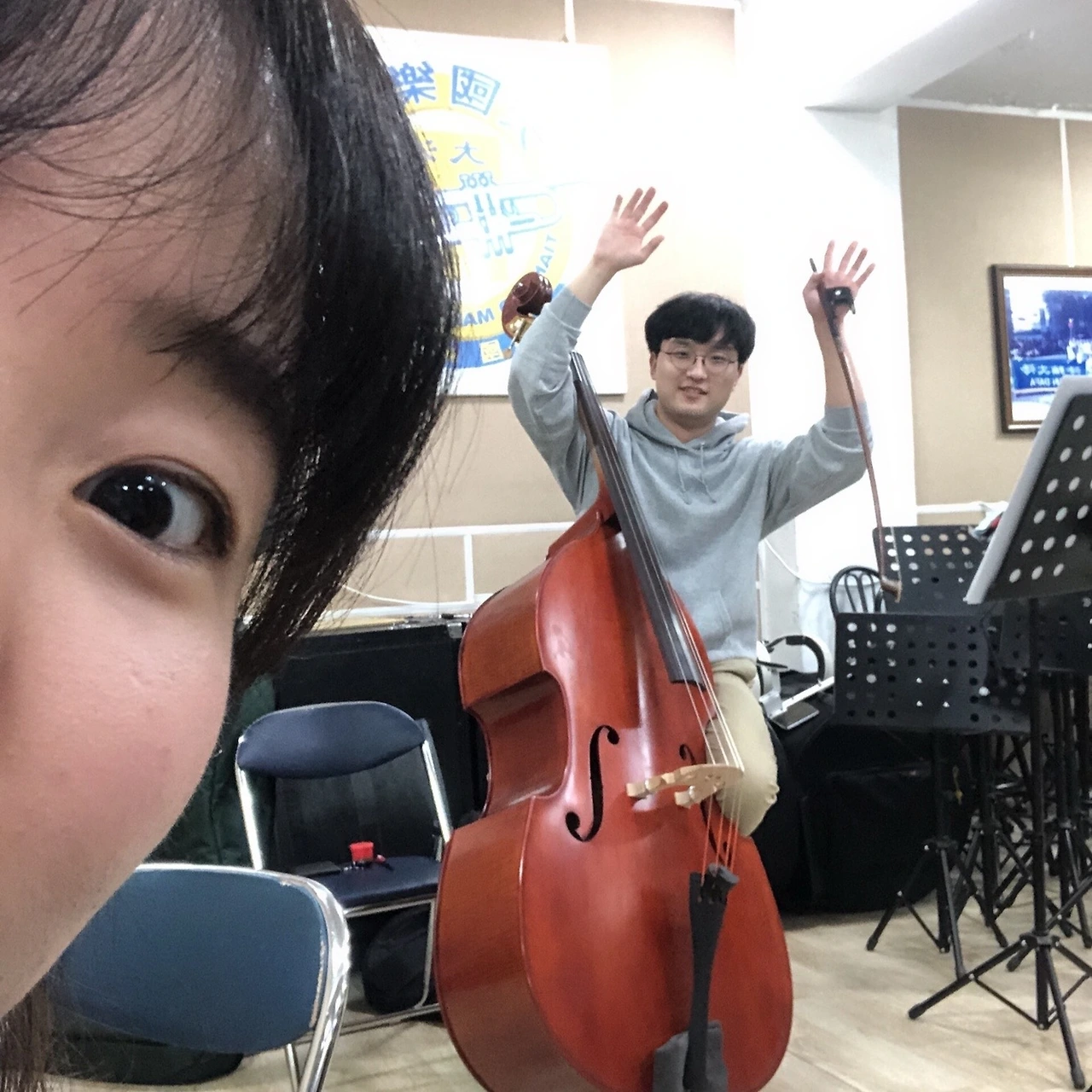 그땐 할 줄 아는 악기가 전혀 없었는데 마침 그 선배가 회장이어서 괜찮다며 들어오라고 해서 들어가게 됐어요. 그렇게 우연히 들어간 오케스트라에서 벌써 9년째네요. 저는 비올라만 8, 9년 정도 했고 베이스를 시작한 지는 6개월이 채 안됐어요.