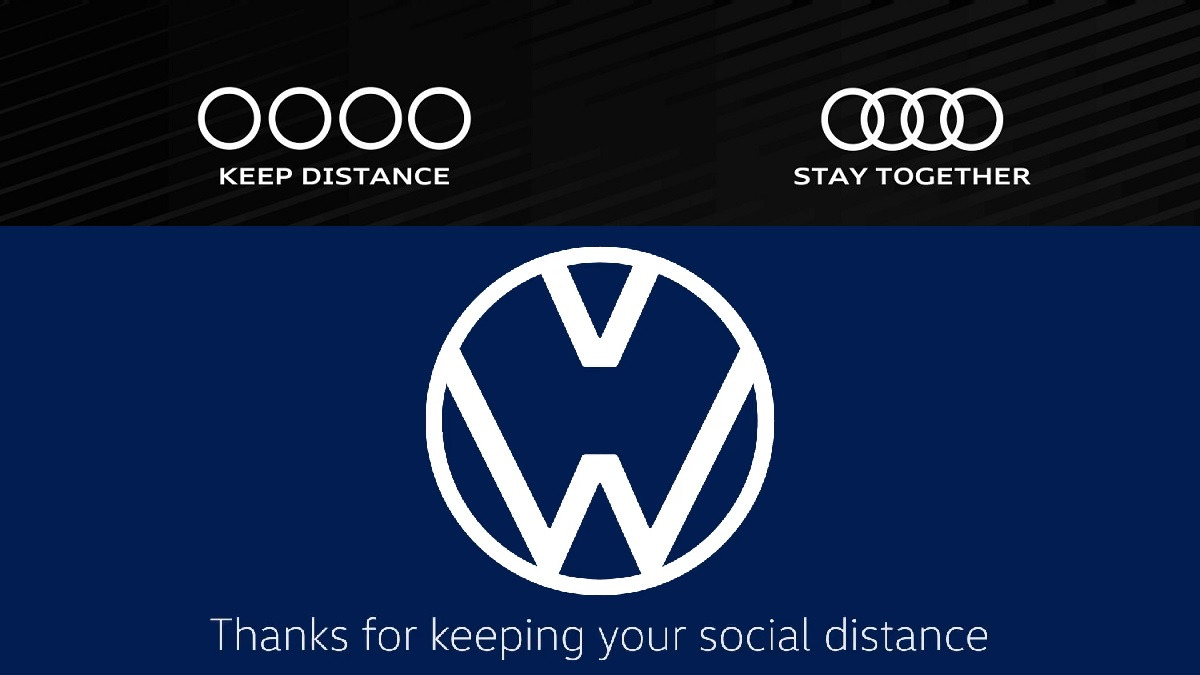 아우디, 폭스바겐, 벤츠 등 글로벌 자동차 브랜드도 자신의 로고를 활용해 사회적 거리두기 캠페인에 동참하는 센스를 발휘하고 있다.