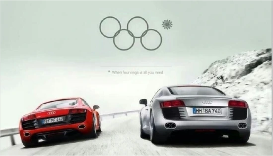 밑의 부제엔“네 개의 링으로만 충분할 때(When four rings is all you need)”라고 적혀 있다. 그 아래 눈길을 질주하는 아우디 쿠페가 나온다. 정말...센스가 뚝뚝...묻어난다. 그런데 아우디 측에서는 공식 광고가 아니라고 했다. 공식 광고여도 꽤나 괜찮았을 것 같다는 생각을 해본다.