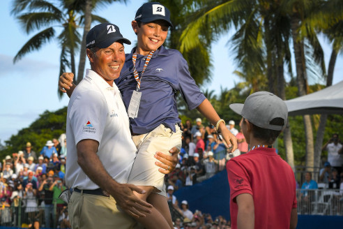 메트 쿠차가 마지막 퍼팅을 한다. 마침내 우승이 결정되고 가족들이 축하해주러 왔다. 두 아들과 와이프가 축하해 주는데 행복감이 전해진다.