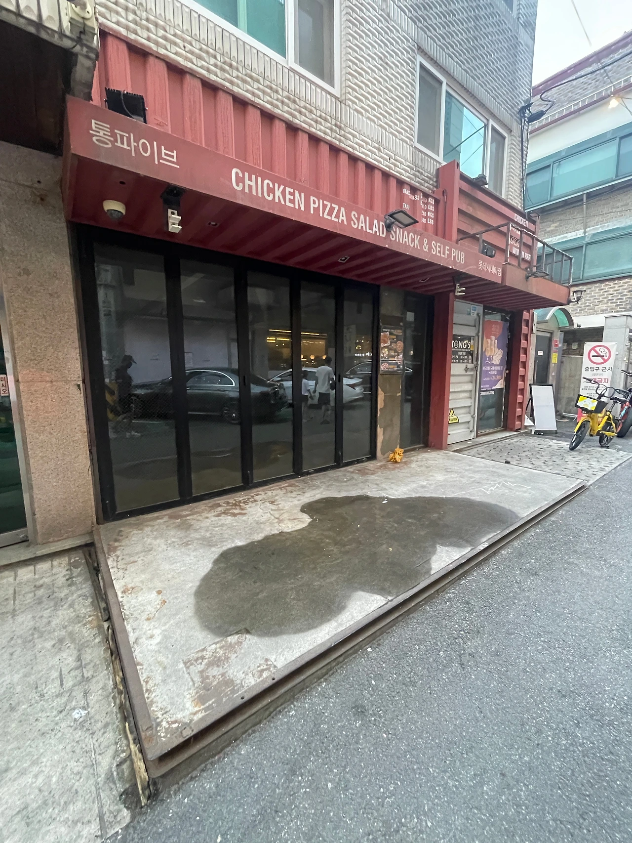 문을 닫은 동네 세계 맥줏집 앞에서...