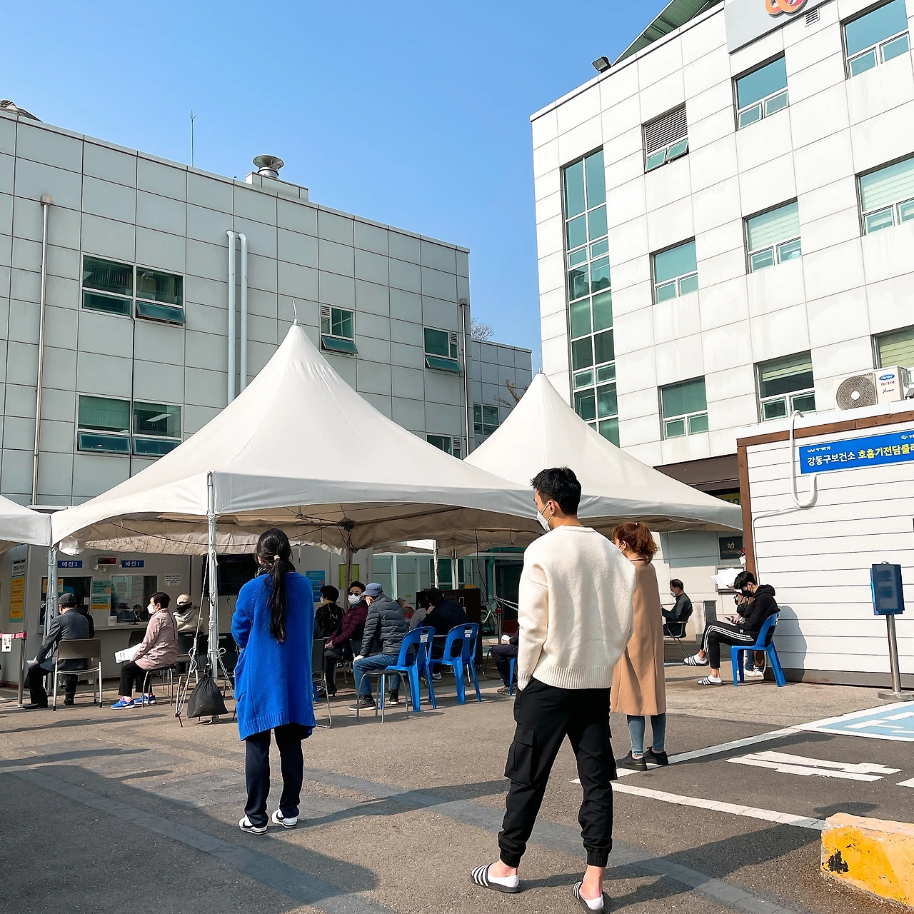 오전 9시 40분. 30분간 대기자들 관찰결과 요약. 생각보다 우리 동네에 살고 있는 외국인도 많다. 여기에서도 저렇게 둘이 딱 붙어있어야 되나 생각했던 커플은 여자분이 외국인인데 한국말을 잘 못한다. 남자친구 혹은 남편이 그래서 딱 붙어있을 수 밖에... 한 걸음을 옮기는 것조차 어려운 할머니가 한 분 계신데, 마스크를 착용하고 한 걸음, 한 걸음, 걸어가는 것이 너무 힘들어 보인다. 자신이 다녀왔던 곳에서 확진자가 나왔다는 문자를 받고 온 분들은 확실히 표정이 안좋다. 외국에 있다가 입국해서 자가격리를 마치고 첫 외출에 코로나 검사를 받으러 온 사람들도 많다. 전체적으로 진행 프로세스가 병원 진료와 비슷한데 연세가 있는 분들은 안내가 조금만 빠르면 잘 이해를 못하신다. 사람들이 거리를 지켜야 하니 적극적으로 도와주지도 못한다. 나도 검사 용지에 끼워진 안내사항을 떨어뜨렸는데, 먼 발치에서 한 분이 '떨어졌어요'라고 나지막하게 알려주셨다. 절차를 이해하지 못하고 번호표와 상관없이 끼워드는 분도 계신다. 연세가 지긋한 노부부는 대화금지인 것은 알지만 여기서 불안을 푸는 방법은 대화 밖에 없어서 조용히 끊임없이 대화를 주고 받는다.