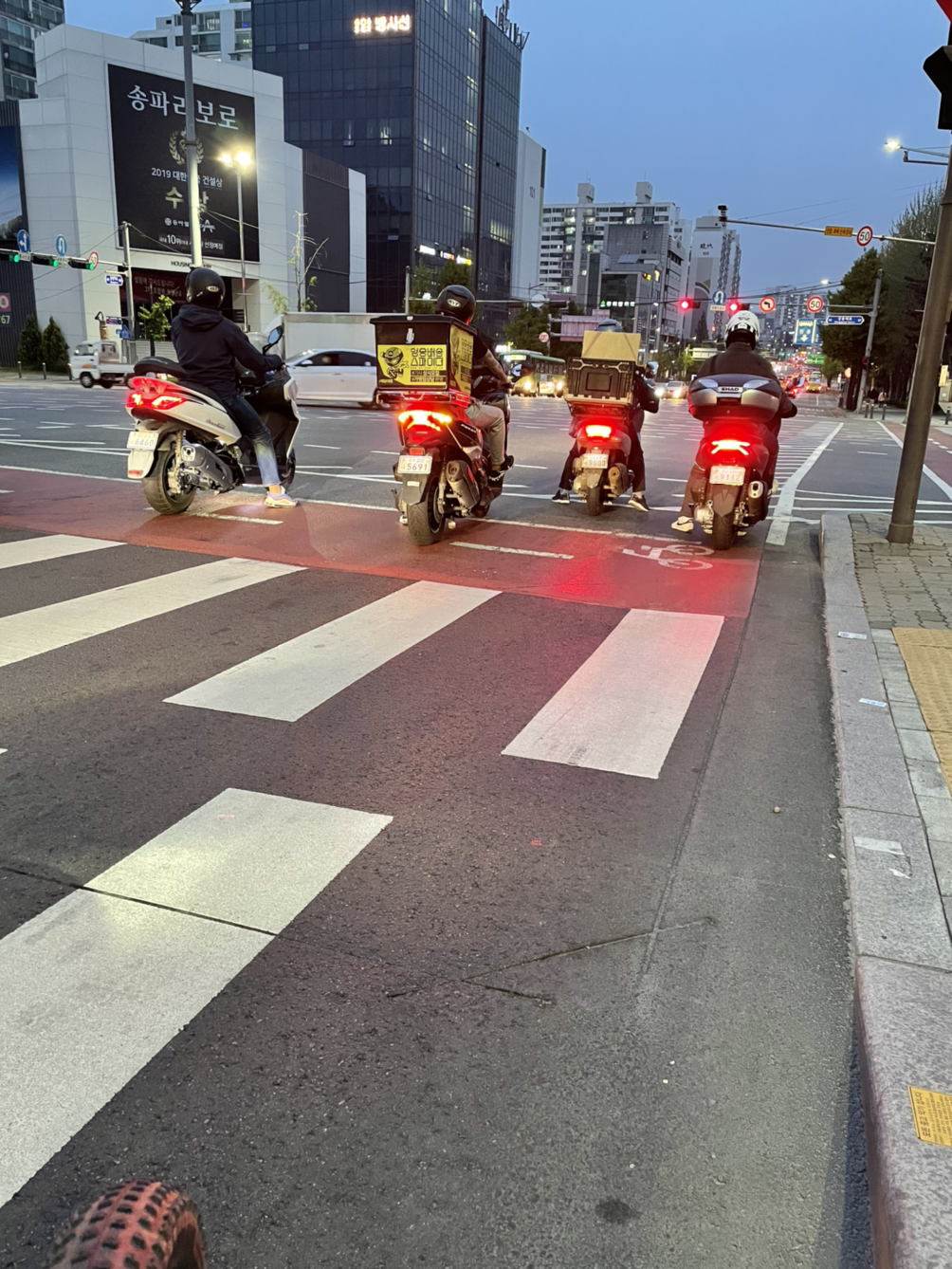 배달을 하면서 깨달은 점도 있다. 첫 번째는 AI는 아직 공부를 더 해야 한다는 것. 강동구에서만 배달을 하다가 송파구에 배달비가 더 비싸게 책정되어 있어 송파구로 진출을 했다. 송파구는 재건축 이후에 대규모 아파트 단지가 된 곳들이 많다. 규모를 간단히 설명하자면 아파트를 따라서 한 바퀴 달리면 3-5km가 나오는 단지들이다.(내가 그렇게 달려본 적이 있어서 안다) 하지만 주소 체계에서는 이 아파트들은 동일하다. 101동에서 301동까지 갈때 3km 거리라고 해도, 도로명 주소 앞은 동일하다. 그리고 고층 아파트를 엘리베이터로 이동해야 하는 것도 고려하지 못했다. 아파트 앞에 도착했지만 28층까지 배달을 가는데는 얼마나 거릴까? 운이 정말 없으면 10분이 걸린다. 아이들이 학원을 마치고 집으로 가는 시간이라면, 3분 이상 기다려서 탄 엘리베이터가 한 5번은 서야한다. 배차 방식은 일반 방식과 AI 배차 방식이 있는데, AI가 배달 동선을 잘 구성해주는 경우도 있었지만, 위 경우처럼 좀 모자란 경우들이 있었다.