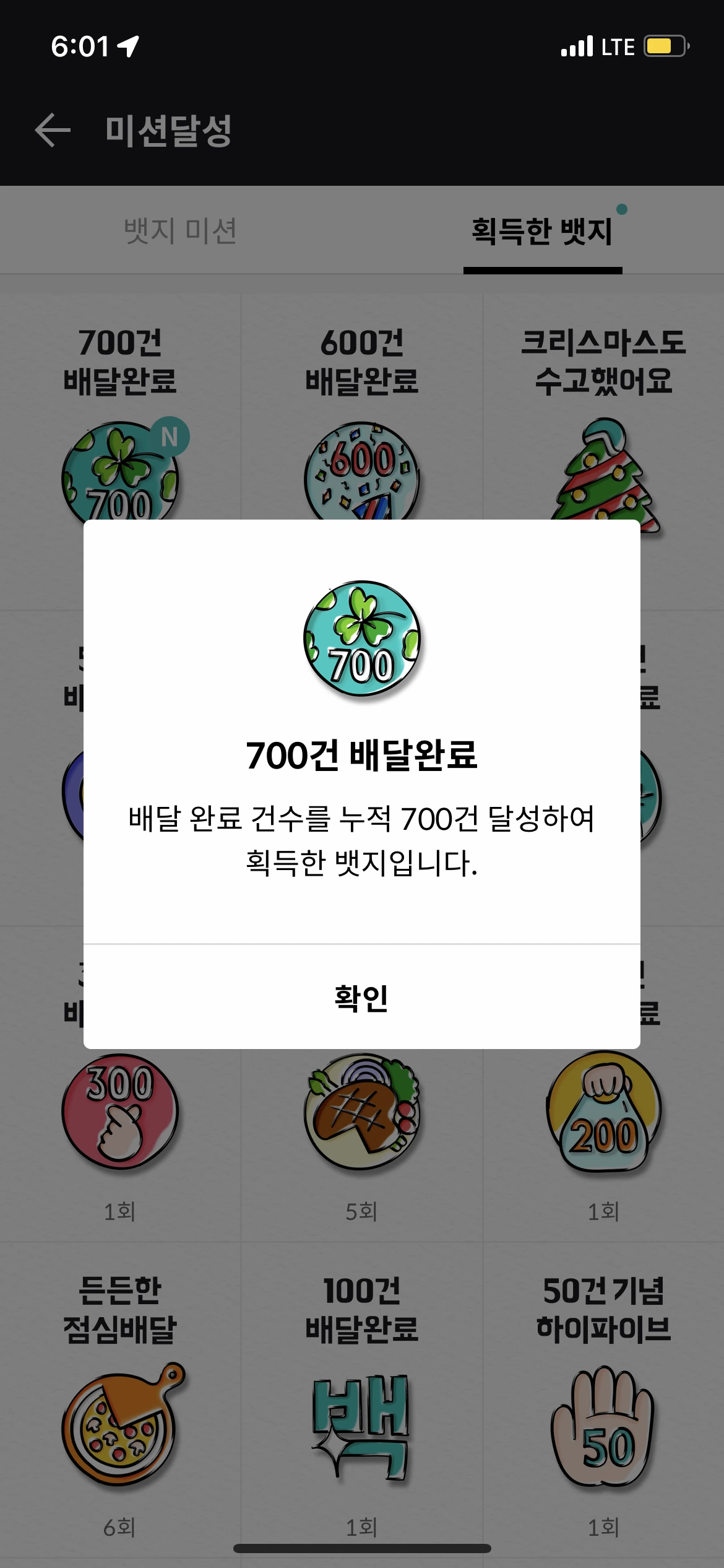 어제 저녁에 15건을 배달 완료를 했고, 배달완료 700건을 달성했다. 700번째 배달은 천호동 쭈구미 골목에서 픽업한 쭈꾸미였다. 700번째 배달이라서 특별한 것은 없었다. 내 배민커넥트 앱에 '700건 배달완료' 뱃지를 확인하면서 자축을 했고, 배달을 계속했다.