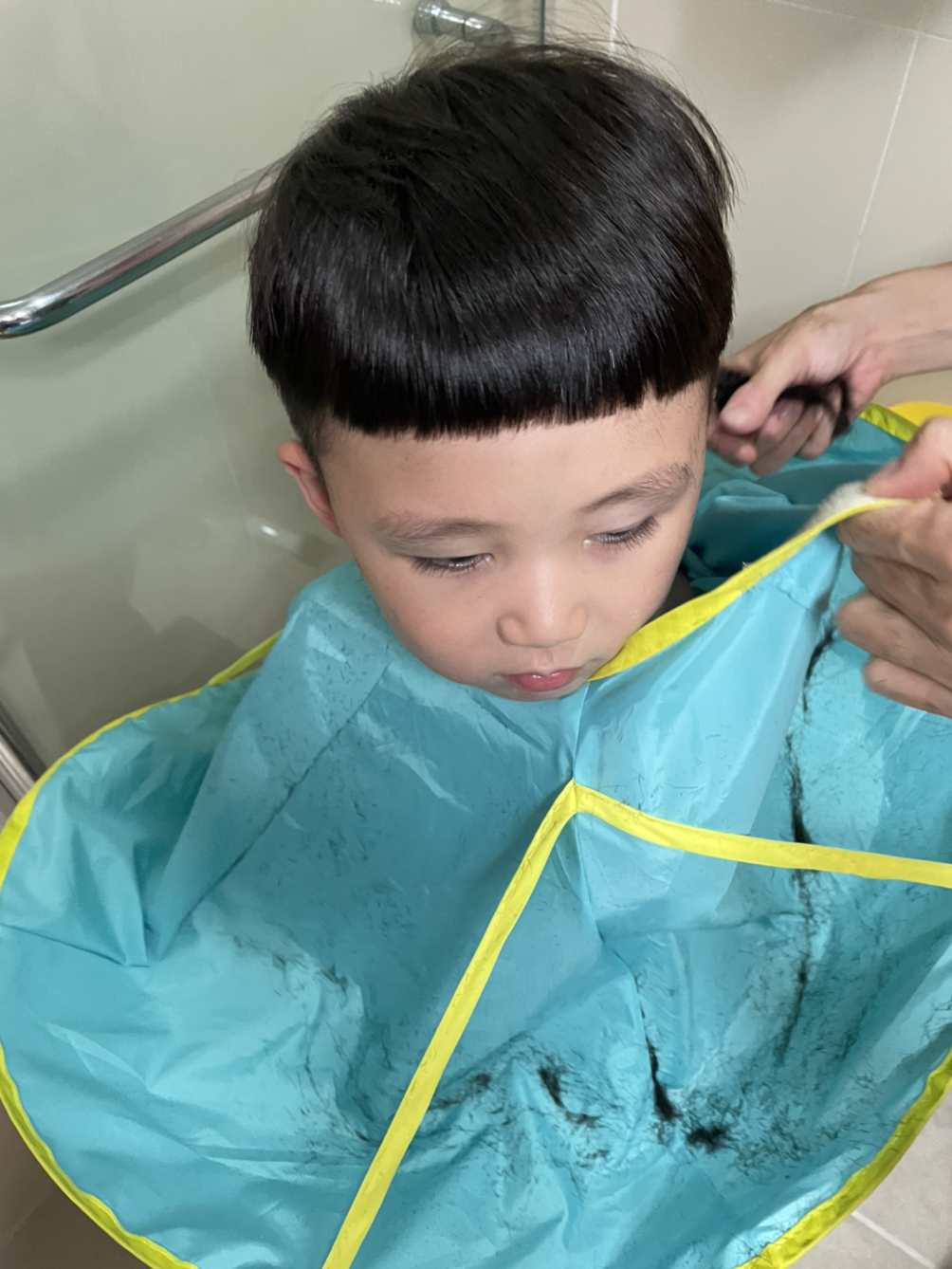 늘 엉아라고 주장하는 아들은 언제까지 엄마 미용실에 다녀야 할까? 다음에 엄마 미용실에 갈 때는 엄마를 위한 목욕탕 의자와 긴 빗을 하나 추가 구매할 예정이다. 원이 엄마, 어젯밤에도 수고 많았어요! 늘 금손 사랑합니다!