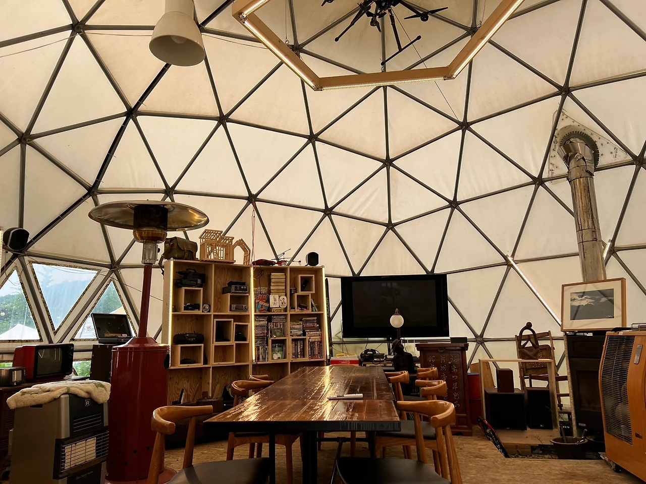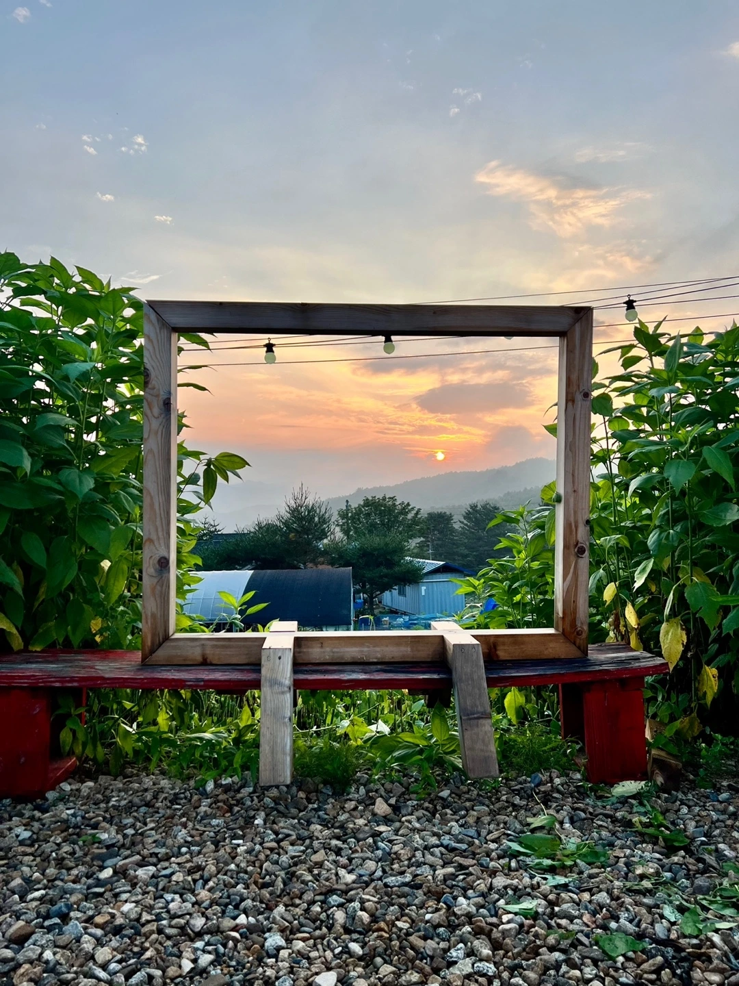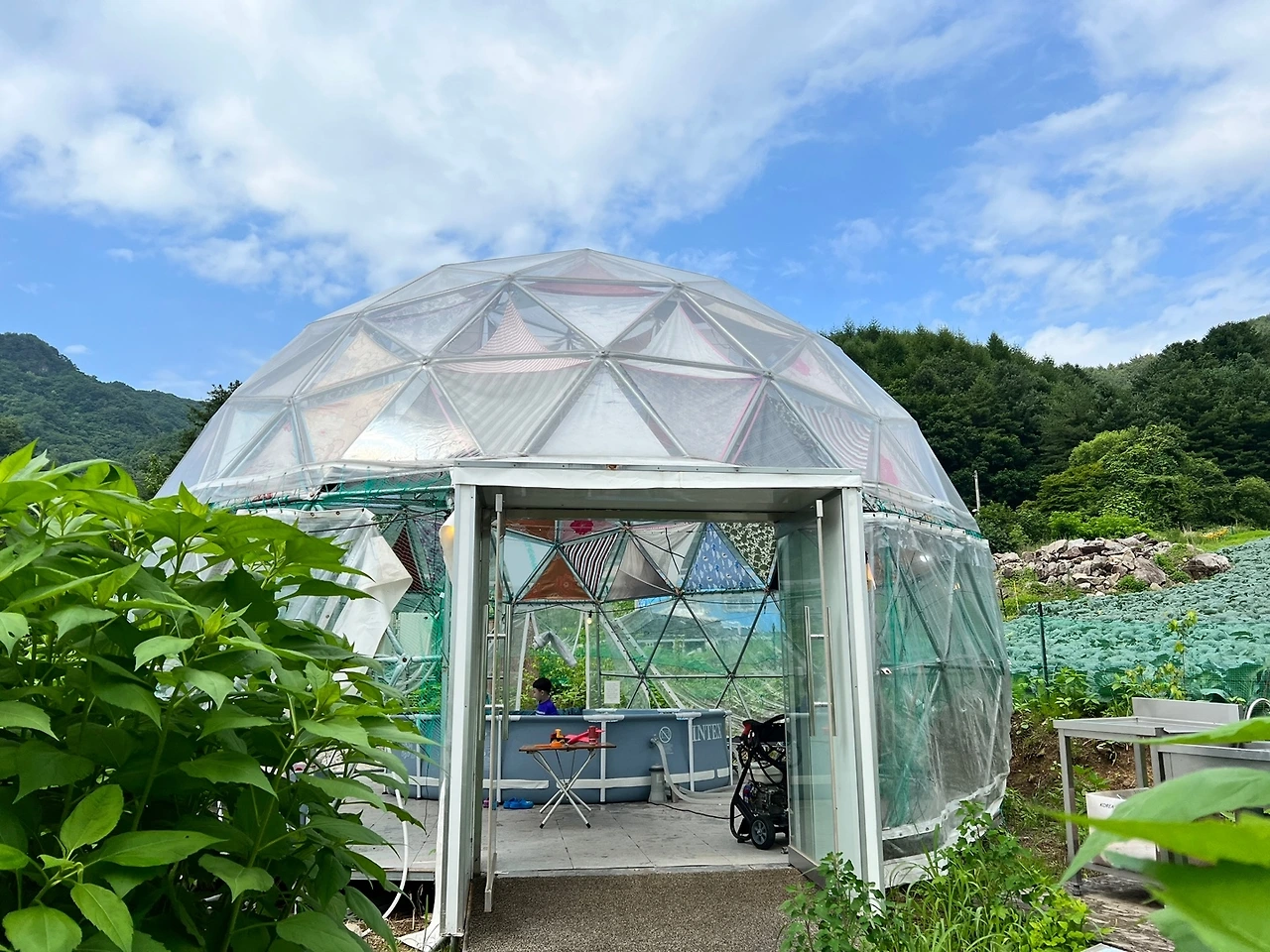 평창에 위치한 시골집을 새 단장한 곳으로 방학 때 갔던 시골 할머니 집과 같은 건물은 화장실 및 부엌은 현대적으로 고치고, 카라반 한 동, 직접 만드신 널찍한 돔 공간이 3동이나 있는 곳이었다. 다자녀가 있는 한 가족이 가서 놀아도 좋고, 한 팀으로 볼 수 있는 가족 2팀이 가서 놀기에도 손색이 없는 곳이다. 해외 원정 산행 경험도 많으신 형님은 돔 공간 한 동은 예전의 물건들을 모아놓은 추억 박물관으로 만들어두셨다.