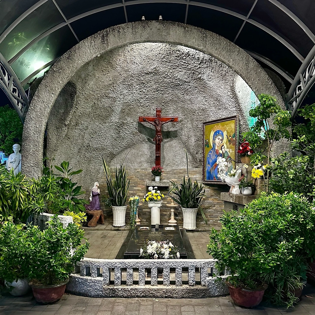 미사 후 성모동산에 오래 머무는 신자들의 마음.