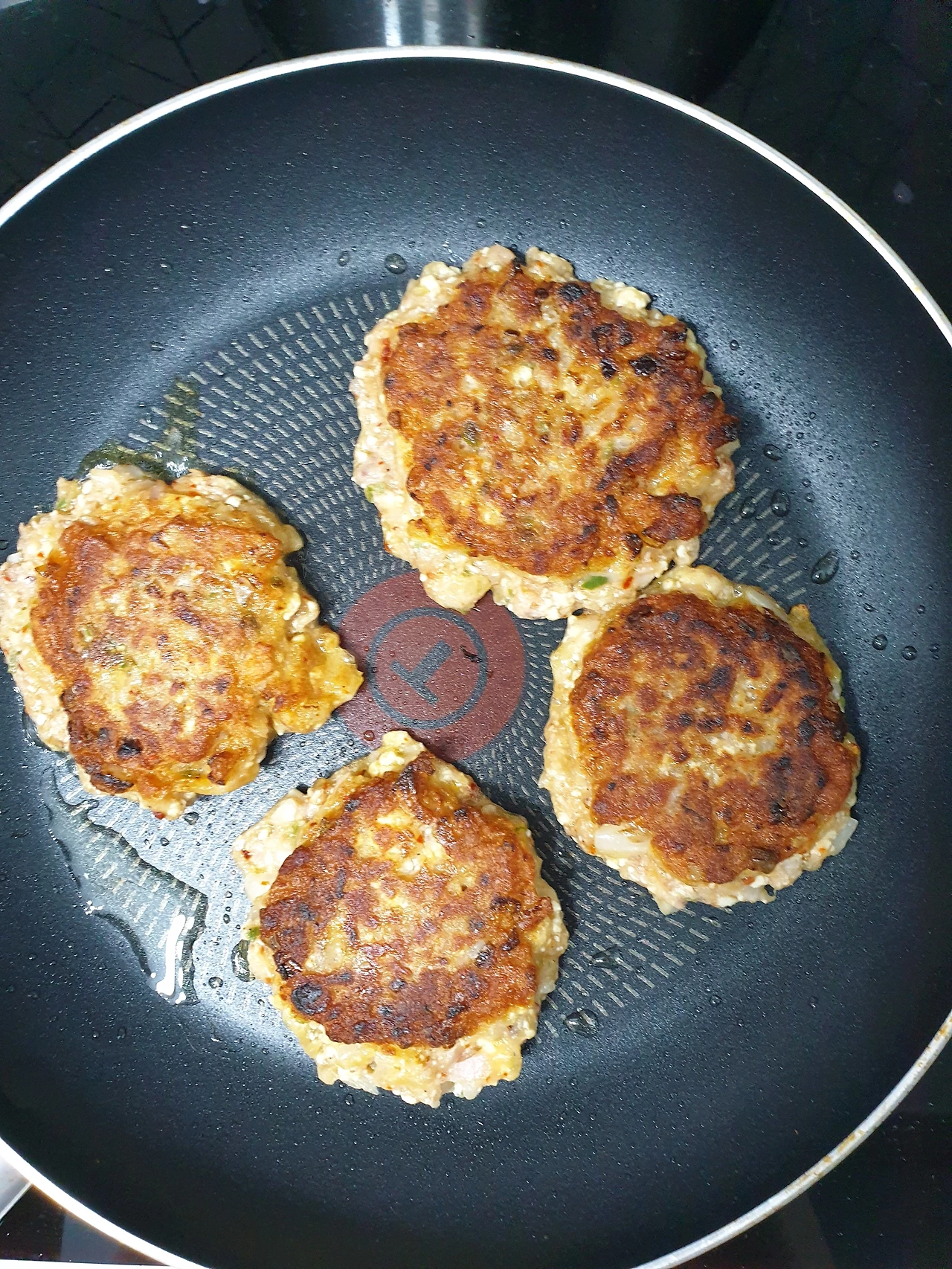 잘 섞은 반죽은 팬에 기름을 충분히 두르고 적당한 크기로 부쳐준다. 일단 한 숟가락씩 반죽을 떠놓고 아랫면이 충분히 익었을 때 뒤집어서 뒤집개로 납작하게 눌러준다. 아랫면을 충분히 익히지 않고 뒤집으면 전이 아니라 찰떡이 된다. 마음이 급하더라도 충분히 기다려줘야 한다. 하지만.....너무 기다리면 홀라당 타 버린다. 나도 너무 늑장을 부려서 망(亡). 그러니 기름을 충분히 두르고 불을 줄여 줘야 한다.