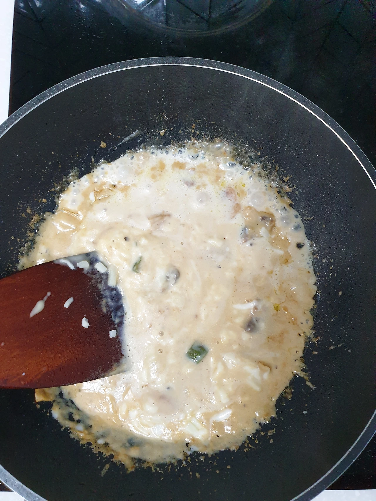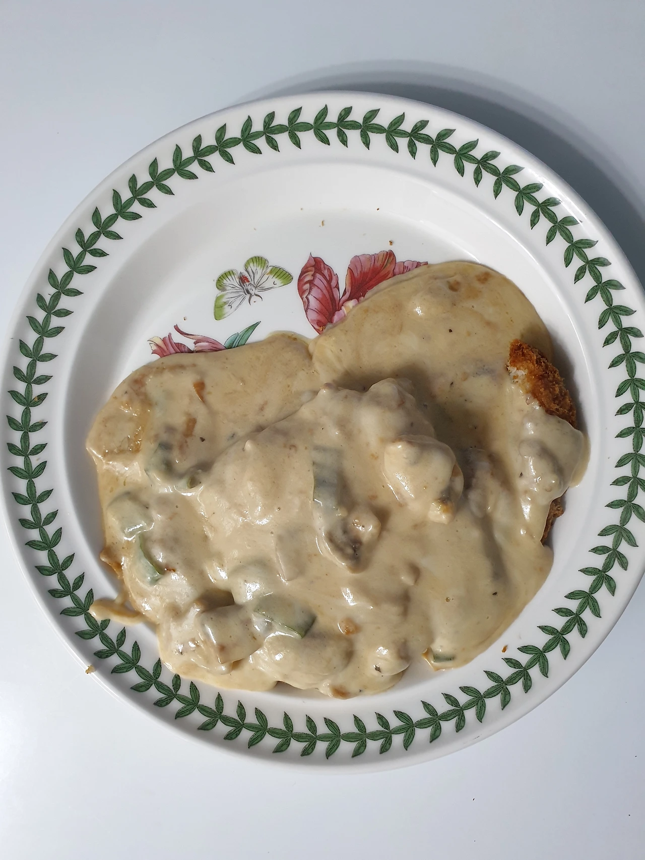 어쨌든 두껍고 촉촉한 돈가스 위에 이불처럼 덮여있던 고소한 크림소스. 그 꾸덕꾸덕한 맛이 간간이 생각나는데 아무리 찾아도 그런 걸 파는 집이 없어서 기억을 더듬어 내가 만들어 보았다.