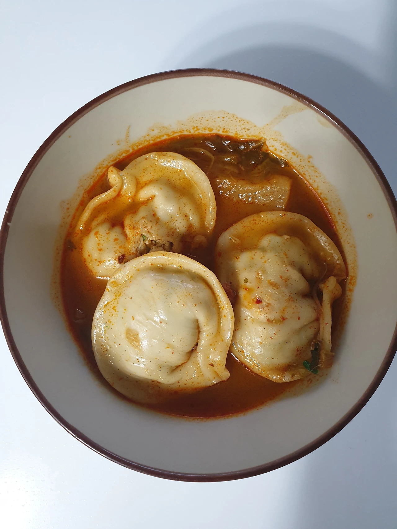 그런데 할머니가 끓여주신 만두국은 그동안 내가 알던 그 만둣국이 아니었다. 만두피가 풀리긴커녕 속 터진 데도 하나도 없는 동그랗고 예쁜 만두가 빨갛지만 맑은 국물에 담겨 있었다. 버섯과 닭고기 고명이 올라간 만두국은 보기도 좋고 맛도 좋았다.