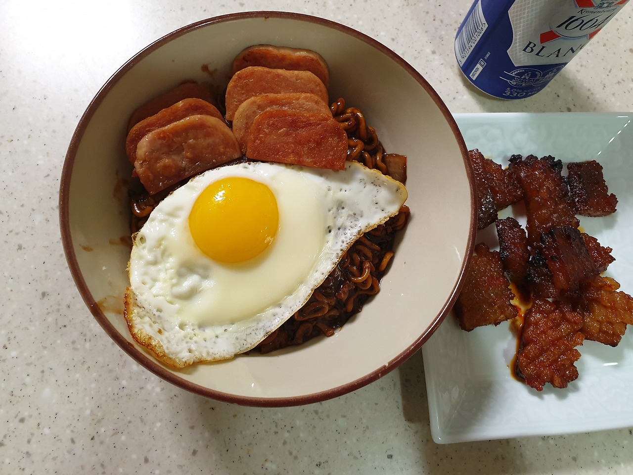 짜란~ 인스턴트 짜장라면이 고급음식이 되었다. 그대신 부엌은 난장판이 되었을 것이다.... 혹시 오해할까봐 말하는데, 건강하게 먹으려고 이 정성을 쏟은 게 아니다. 맛있게 먹으려고 공을 들였을 뿐. 이렇게 공들인 한끼를 누군가 맛있게 먹어주면 세상 그런 낙이 없다. 그래봤자 고작 라면인데.